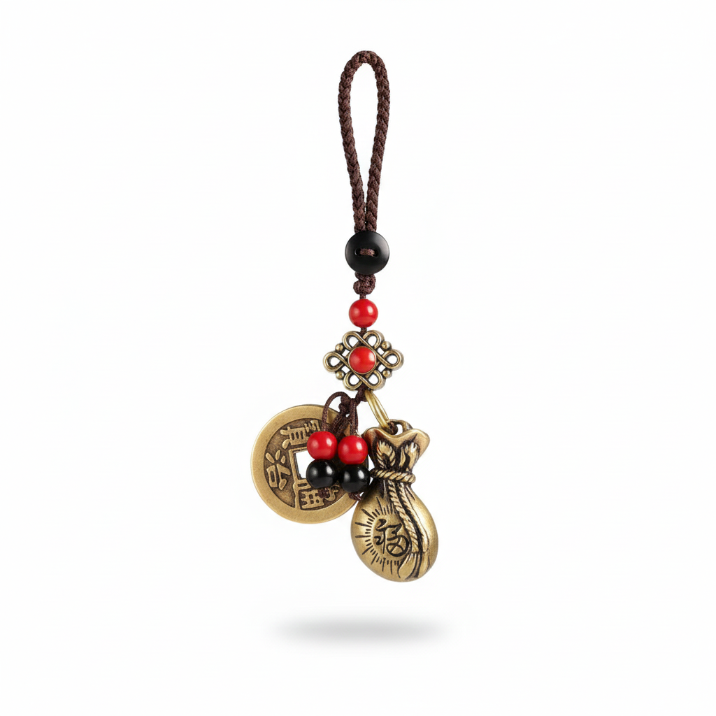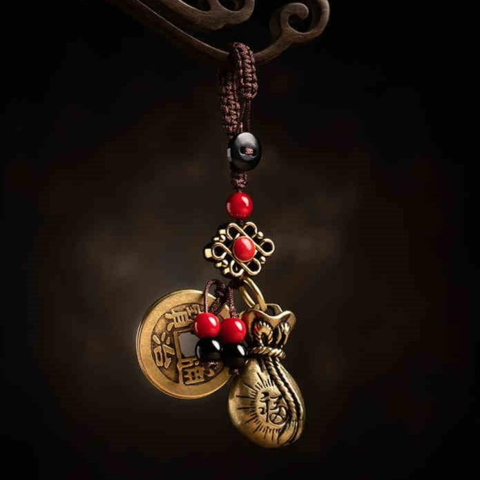 Feng Shui Money Bag Brass Keychain Key Lanyard Personalized Handmade