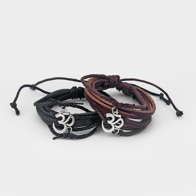 Adjustable Leather OM Bracelet Tibetan Mantra